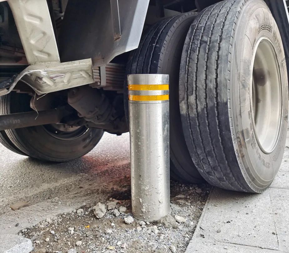 緩沖隔離柱實車碰撞試驗防撞作用顯著,有效保護司乘人員安全。實際項目中,一輛15噸貨車撞向?qū)毎岔椖烤彌_隔離柱被阻攔,驗證了產(chǎn)品的防撞性能。